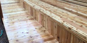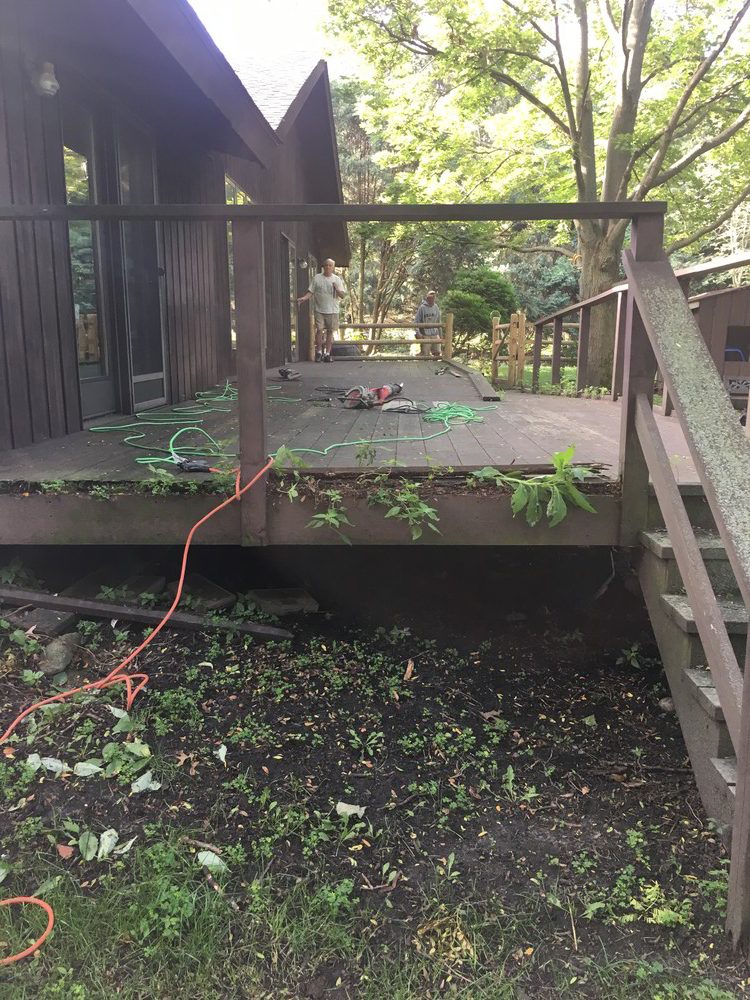 Homeowners situation, Their existing cedar deck is in need of new decking and rails. Customer would like to use cedar once again since the last lasted close to 30 years. There are 2 wheelchair ramps that need to remain. The height of deck does not require railings, but due to a wheelchair being used they wanted some fall protection yet keeping it open for the view of their backyard.